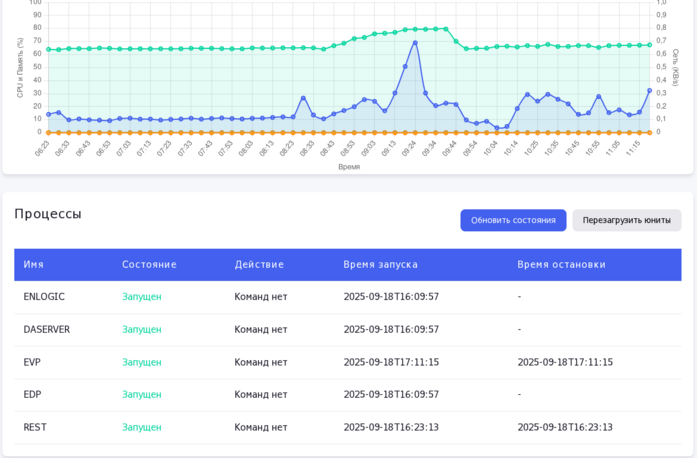 Схема взаимодействия runtime модулей SCADA Энтек (нативные модули Linux)